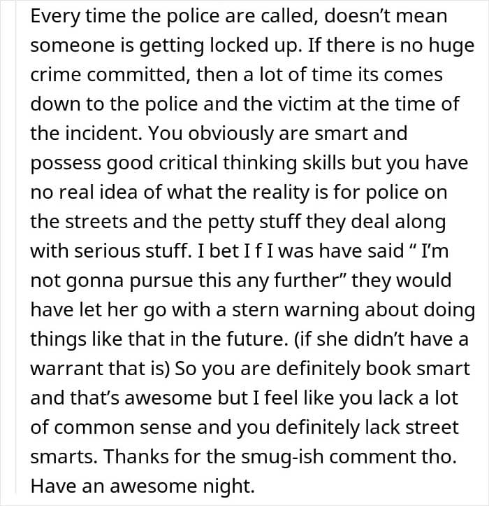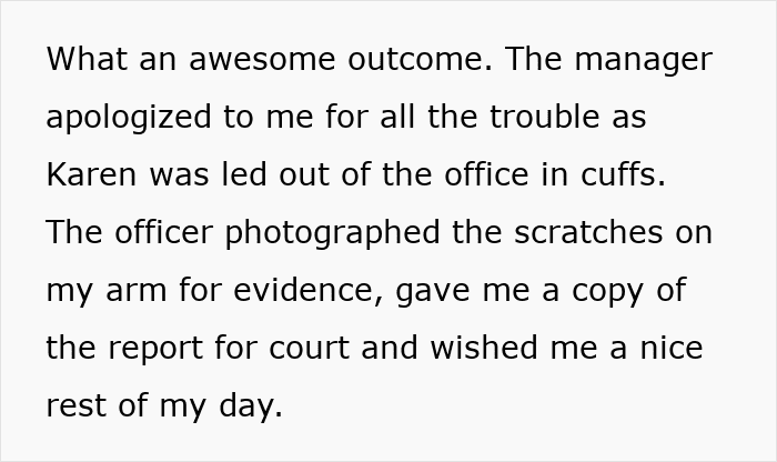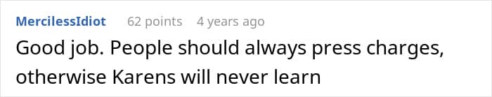 The story takes a much darker turn that separates a merely annoying person from a dangerous Karen when she resorts to physical aggression and then fakes a scene of victimhood. This is a behavior known as weaponized victimhood. It involves a person in a position of relative social power pretending to be the victim of a person they perceive as a threat or an inferior. In this case the woman likely looked at the man who was six feet three inches tall with tattoos and a shaved head and decided she could use his appearance against him. This mirrors the infamous Central Park birdwatcher incident where a woman called the police and lied about being threatened by a Black man who was simply asking her to follow park rules.