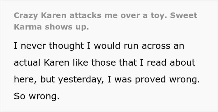 A man shared his harrowing experience with what he described as a “Karen” when he went to the store to buy a toy for his daughter and her friend. As it turned out, this woman was a reseller and decided that she had priority. When things didn’t go her way, she decided to escalate. Fortunately karma intervened.