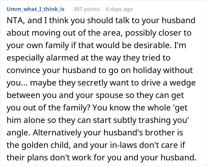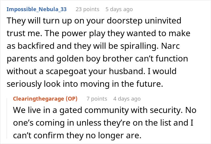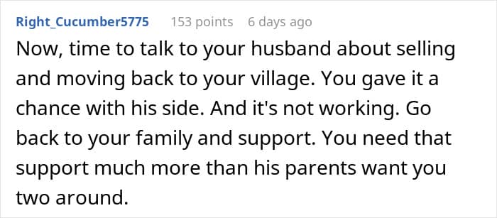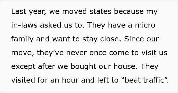 Needless to say, commenters also unanimously supported the original poster, assuring her that her actions were completely reasonable and correct, and that she and her husband should perhaps move back – away from these toxic relatives. “You don’t need the stress and their drama,” someone added 100% reasonably. So what’s your opinion on this situation? Please feel free to share it in the comments below.