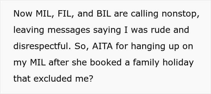 Now, for several days, the OP and spouse have been fending off annoying calls and texts from literally every part of his fam. The last message from his mom even stated that “they knew something was wrong with her because she has no family.” And this despite the fact that they knew the OP’s story perfectly well! In short, it all ended with cutting ties with them, and now the author has decided to seek support online.