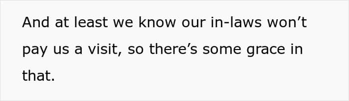 The mother-in-law, however, upset her a lot by suggesting the author’s husband to go to family vacation 3 hours away from the city without her