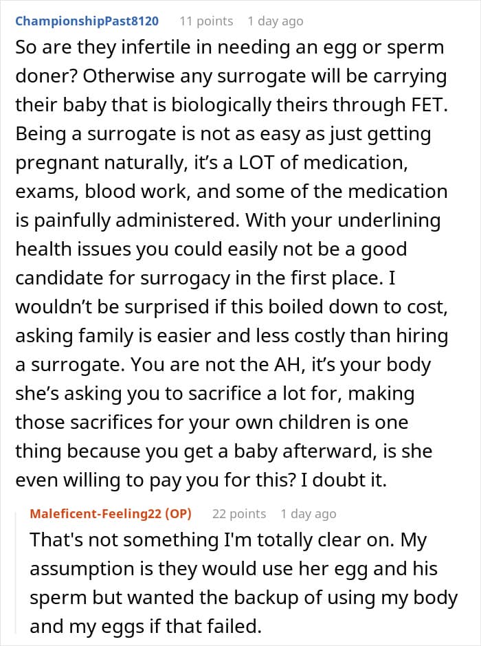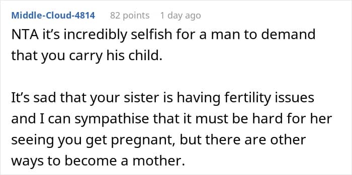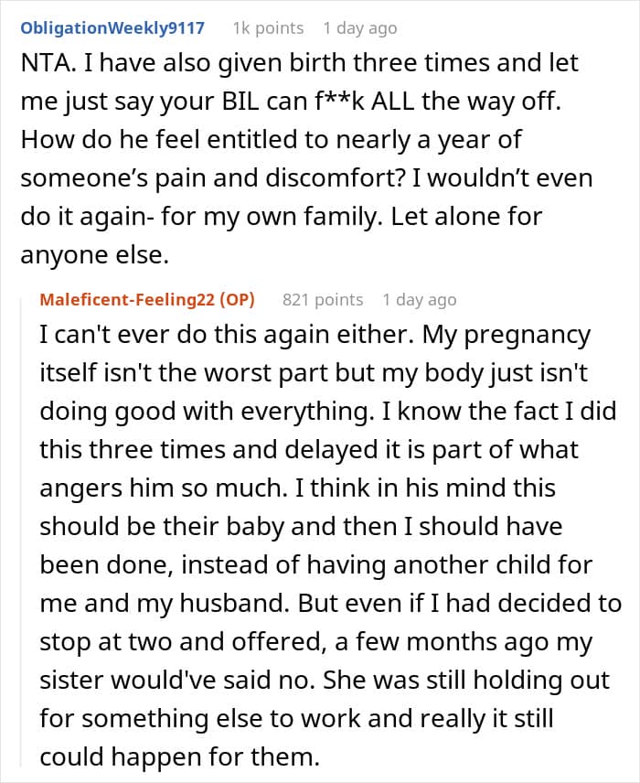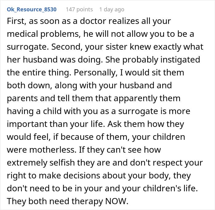 However, not all family members liked the idea. Her sister and brother-in-law, who have been struggling to get pregnant, asked her to become a surrogate instead. In fact, they were so adamant that they began emotionally blackmailing her.
