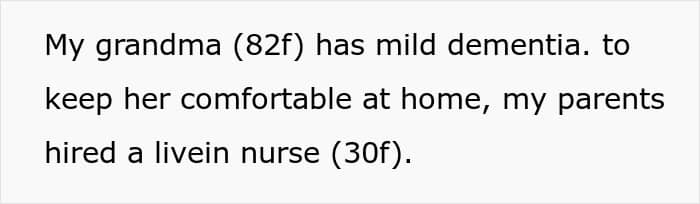 When the OP’s 82-year-old grandmother with mild dementia needed help staying at home, her family hired a live-in nurse. At first, the nurse appeared to be a blessing as she was attentive, warm, and seemingly devoted to keeping the grandmother comfortable. However, as months passed, the OP began to notice some red flags.