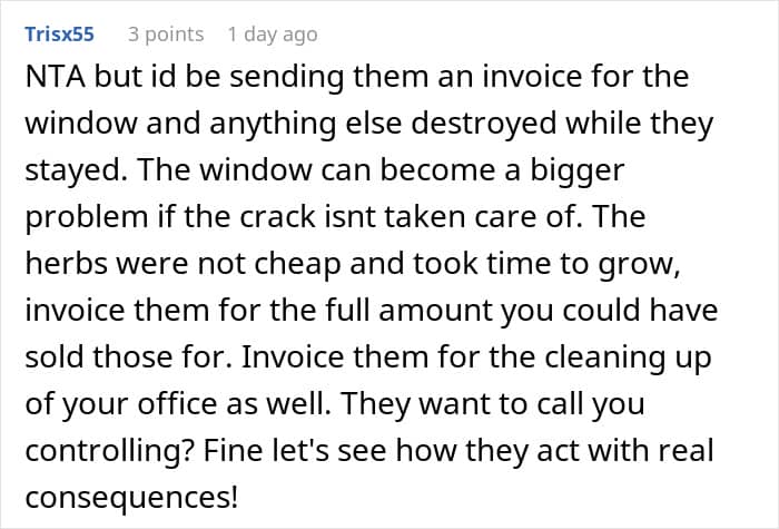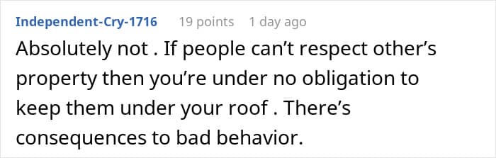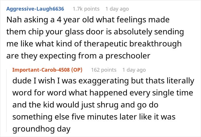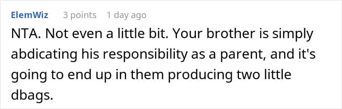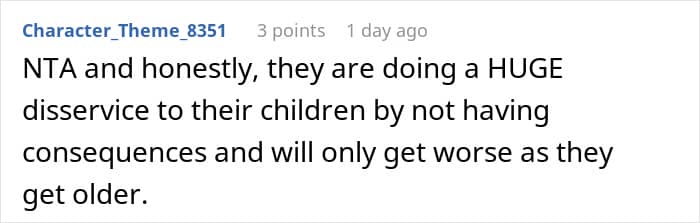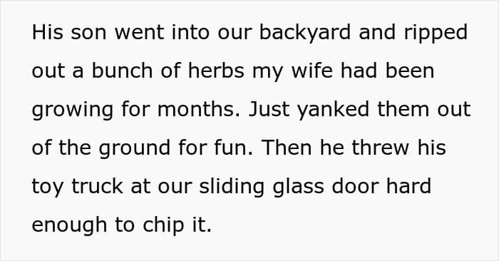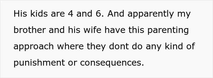 This person had such a hard time with their brother’s kids that they had to cut their visit short. After the children destroyed their home office, chipped their patio glass door, and the parents did nothing, the sibling just couldn’t ignore it any longer. “They don’t do any kind of punishment or consequences,” the person shared in disbelief.