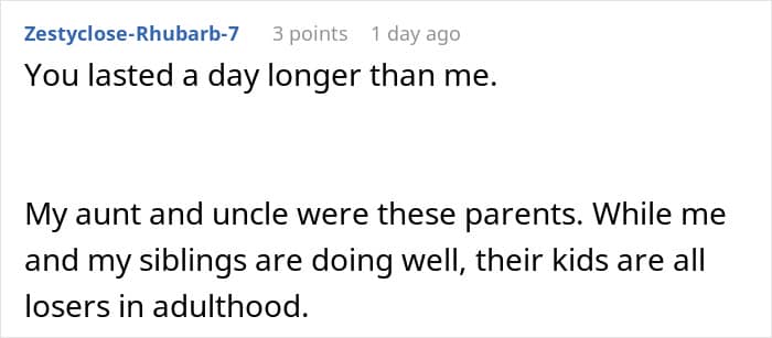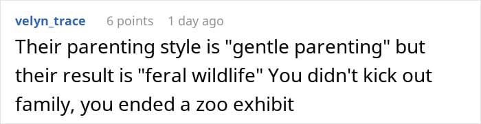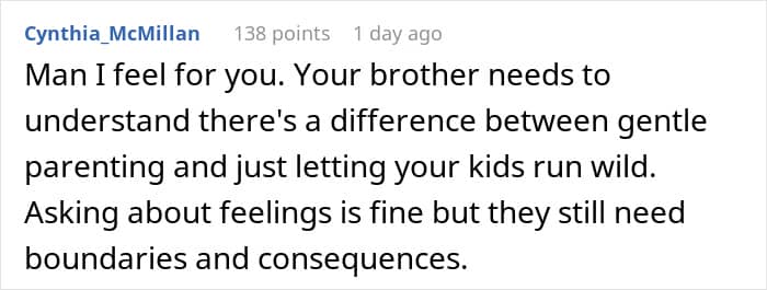 We’ll never know whether the story is an exaggeration or not. Maybe the kids were unruly to the point that the house would have been destroyed. Perhaps the parents did gentle parenting right, and the sibling was just too prejudiced to notice.
