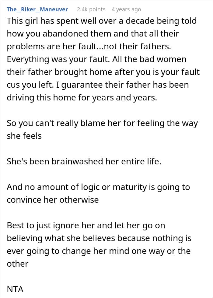 A woman shared that her former stepchild confronted her, accusing her of abandoning them 15 years ago
