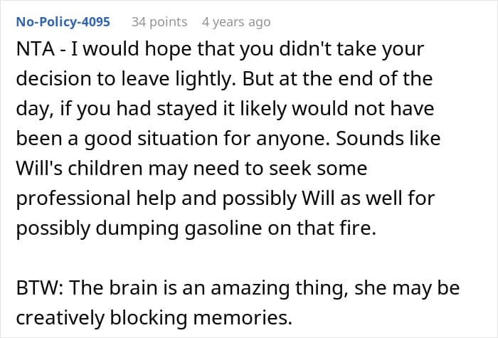 Many people felt the woman acted appropriately and argued that she had no obligation toward her ex-husband’s children
