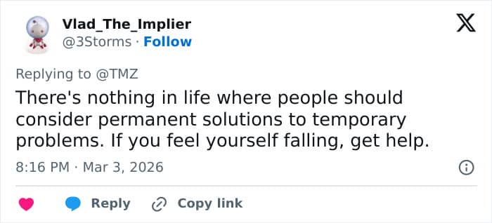 “No matter the circumstance, this is heartbreaking news,” a netizen lamented