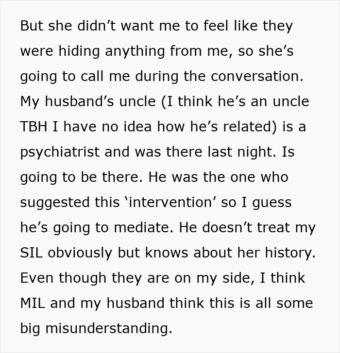The woman later provided a lot more context about the SIL’s mental health struggles