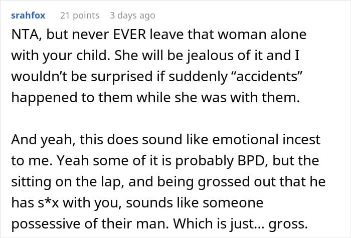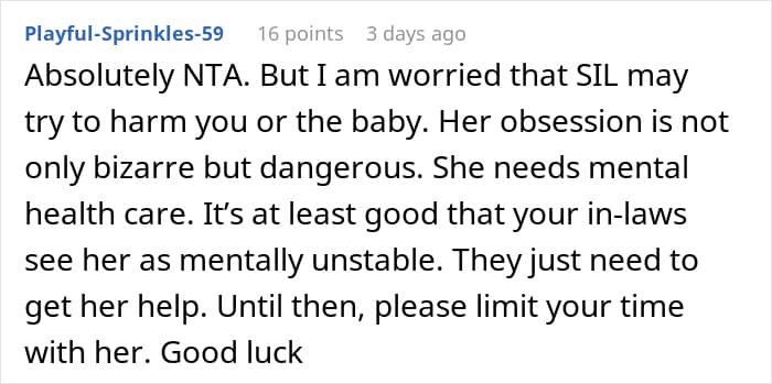 She always suspected something was up. From the time her husband’s sister asked him to share a bed while they were on vacation, to when the SIL accused her of ‘grooming’ her husband. But things came to a head recently, when the woman and her partner announced their pregnancy. The sister-in-law had a literal mental breakdown and an ambulance had to be called.