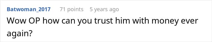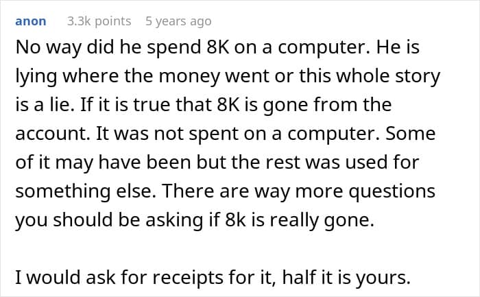 Readers were immediately suspicious of the amount the man claimed to have spent, and offered the woman advice on what to do next