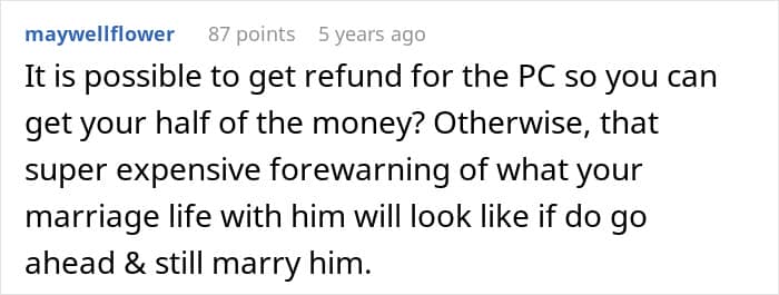 Which is why the woman was left stunned when her fiancé blew it all on a gaming PC