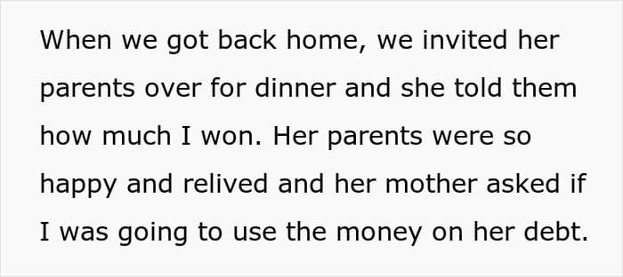 RELATED:A man won a large jackpot in the casino, so his fiancee expects him to put all that money into paying off her debts