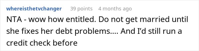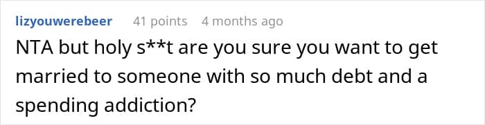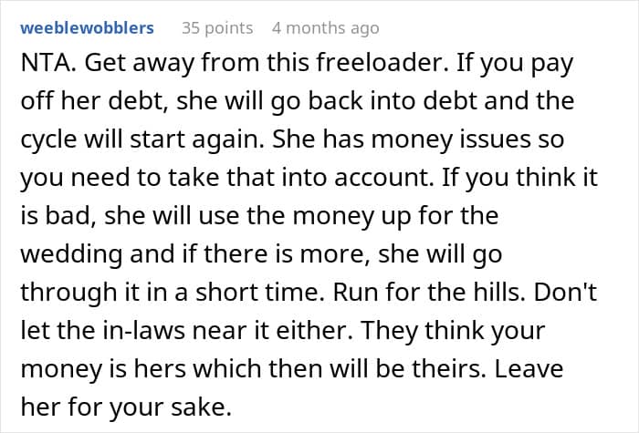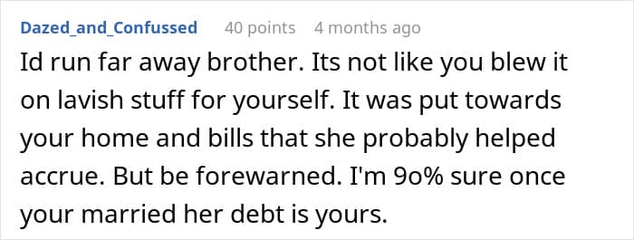 The problem is that the author’s soon-to-be-wife has been struggling with debt since she graduated from college. “My fiancée kept begging me to use all of the money on her debt,” the author explained, but he’s concerned that will only make matters worse.
