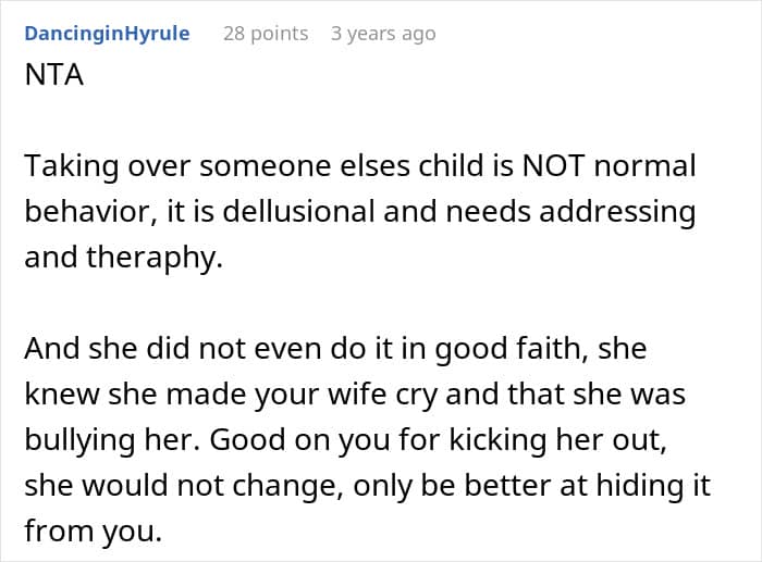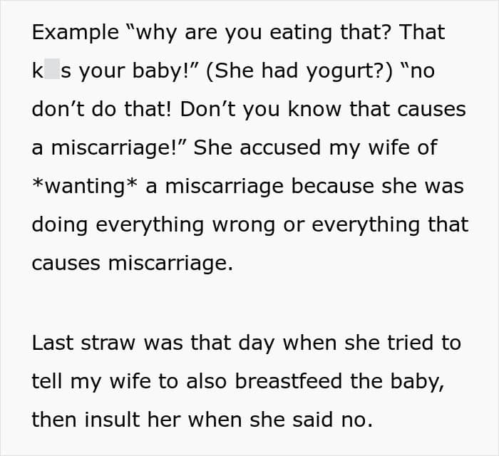 But once he discovered what she’d been saying to his pregnant wife, he told her to get out