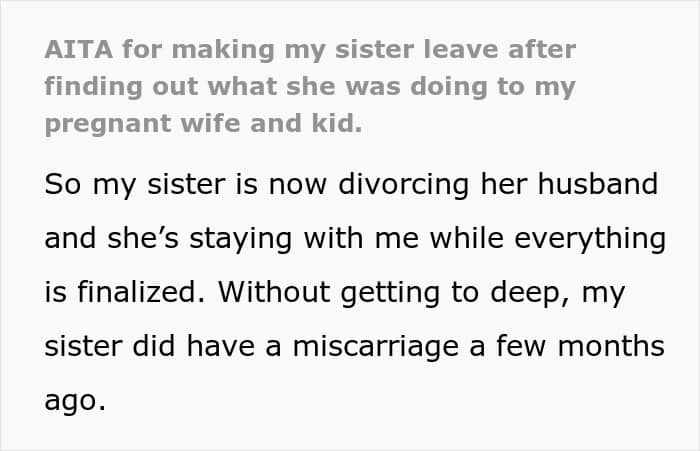 That’s what one man thought he was doing when his sister suffered a miscarriage and began divorcing her husband. He opened his home to her so she could stay with his family while she got back on her feet. But things took a sharp turn when he learned what she’d been saying to his pregnant wife behind his back.