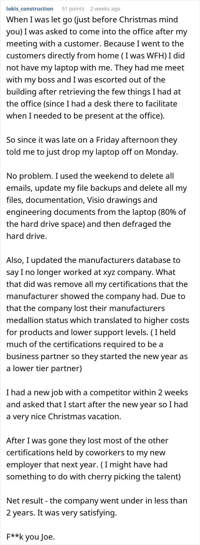 Being “let go” turned out to be a blessing in disguise for the employee