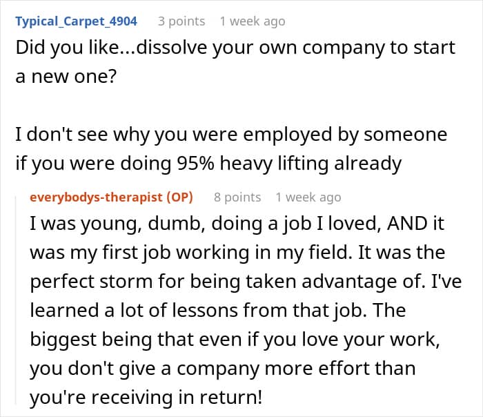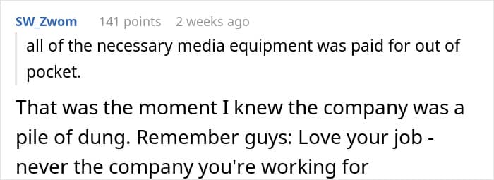 “I was young, dumb, doing a job I loved”: The woman explained in the comments why she’d allowed the company to take advantage of her