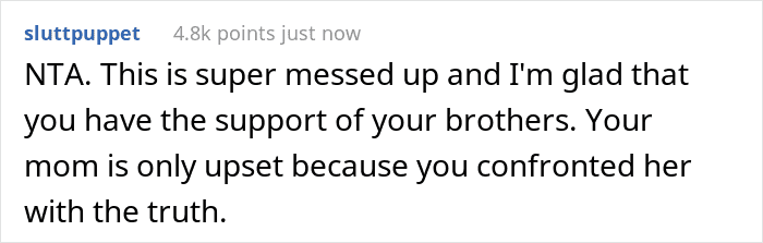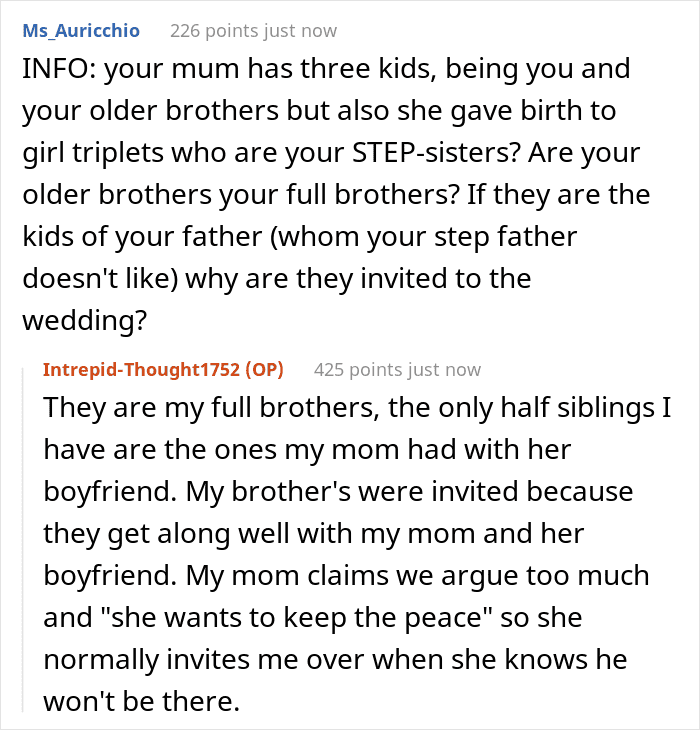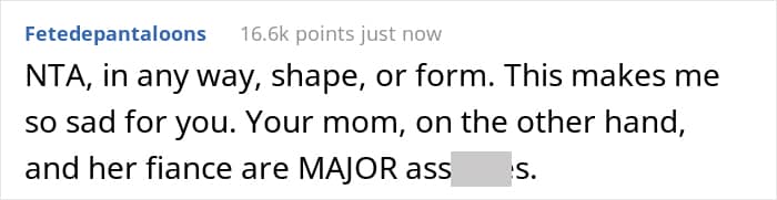 The vast majority of Redditors sided with the daughter and deemed that the only people at fault here are the mother and her fiancé