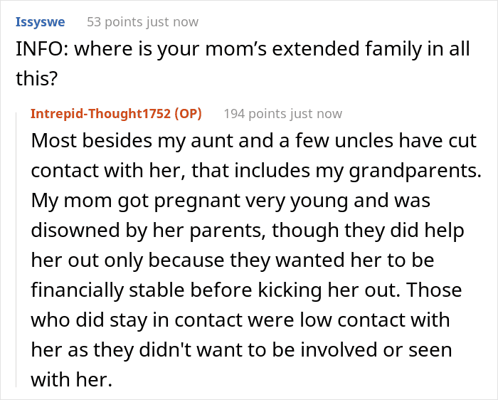 However, this is a delicate situation that is taking a toll on a teenager’s well-being. While it’s reassuring to know the author of this post has someone who’ll be there for her no matter what, parents shouldn’t make their kids feel like they’re unworthy of their love. What do you think about this whole ordeal? Do you justify the user’s actions or believe she was in the wrong in this situation? We’d love to hear your thoughts, so be sure to leave them down below.