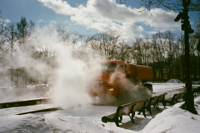I was at a golf driving range, later in the evening, downhill of an ice rink, you could see a white cloud rolling down the hill like fog just feel the oxygen being sucked out off the air. FIND HIGHER GROUND IMMEDIATELY as there is an extremely high likelihood of asphyxiation risk. There was a severe leak in the equipment and fire fighters said it’s a good thing we acted quickly.