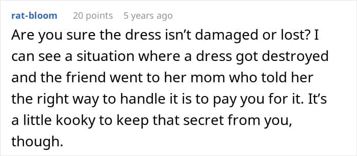 Friendship comes with quirks, but today’s Original Poster (OP) was left upset after a friend borrowed her dress, paid for it, then claimed it as hers. After hoping for some backup from the friend’s mom, she was left more upset after hearing the mom’s response.