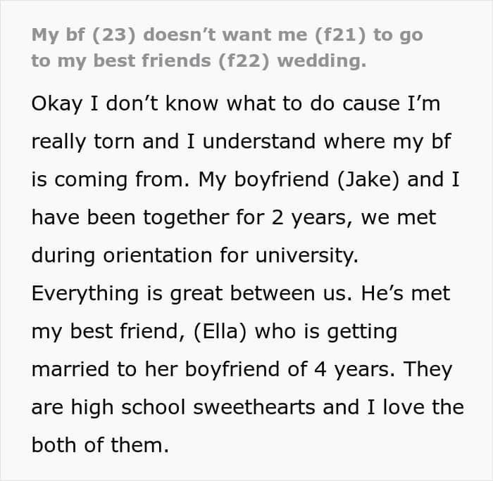 Netizens advised the woman not to miss her bestie’s wedding and some even suggested breaking up