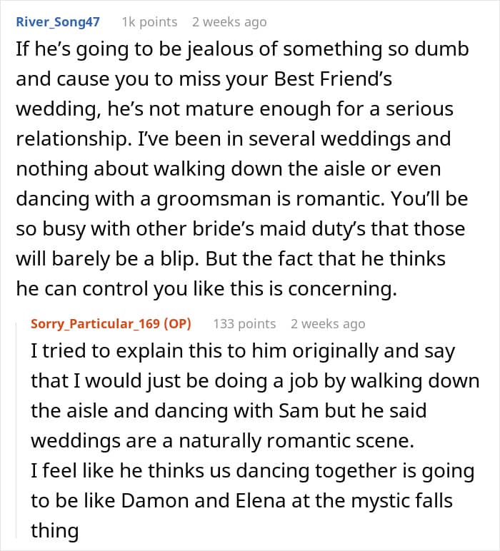Your best friend‘s wedding is a big deal, and you generally shouldn’t miss it unless you have a very good excuse. Yet, one woman is considering bowing out of her Maid of Honor duties and skipping her bestie’s big day altogether. “Why?” you ask. Well, because her boyfriend of 2 years has had a sudden flare-up of insecurity.
