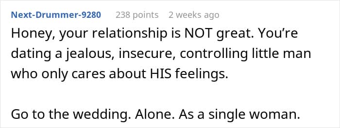 Everything went downhill after she stood her ground and told her BF she’d be attending the wedding