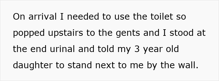A father was having a lovely day out with his three-year-old daughter, including an adventure to the zoo followed by a carvery lunch. But this wholesome outing was about to be derailed by a madman who had a serious problem with bathroom logistics. Upon arriving at the restaurant, the dad, needing to use the toilet, did what any parent in his situation would do and took his daughter with him into the men’s room.