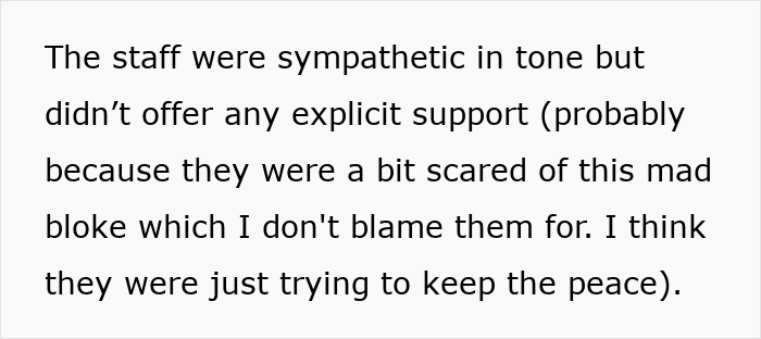 This poor father was left completely shaken, his lovely day ruined by a stranger’s bizarre and unhinged rage. The staff, while sympathetic, was too scared to intervene, leaving him to handle the terrifying situation on his own. He’s questioning a decision he’s made a hundred times before, wondering if he was somehow the unreasonable one in a confrontation with a man who seemed ready to start a fistfight over a urinal.