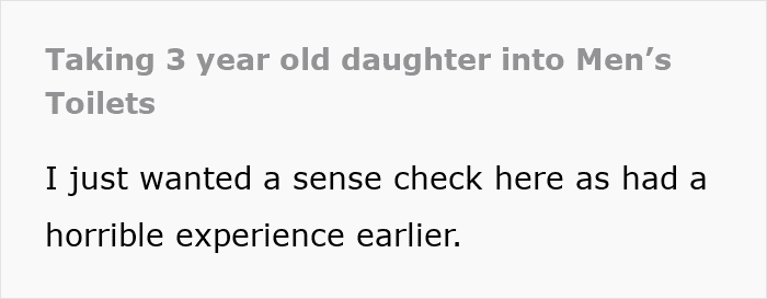 One father took his 3-year-old daughter into the men’s room, and a stranger immediately confronted him about her presence