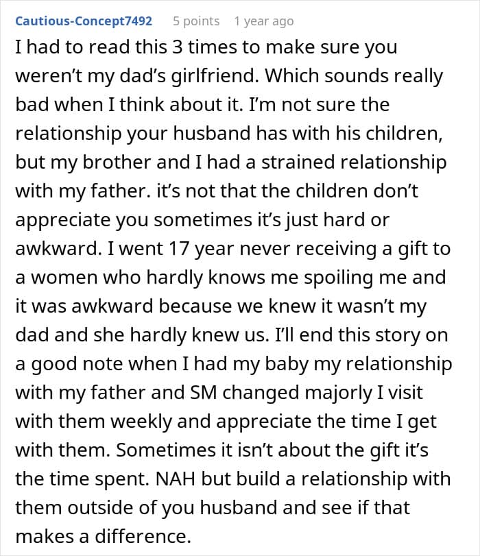 RELATED:The woman has been picking out thoughtful gifts for her stepchildren for years, but she’s rarely gotten a genuine thank you