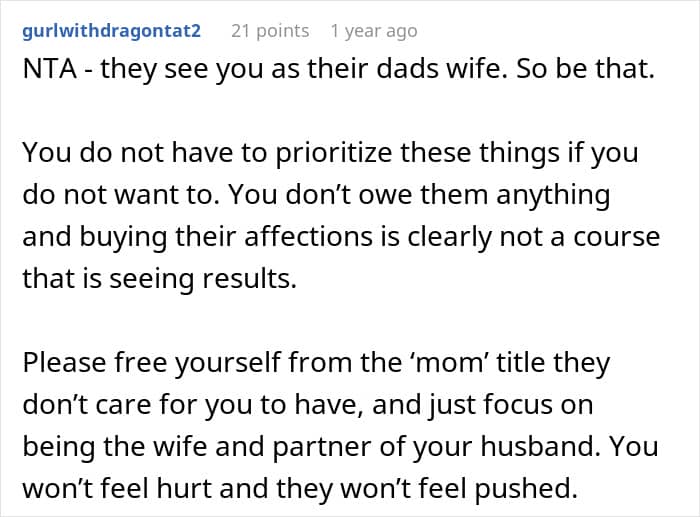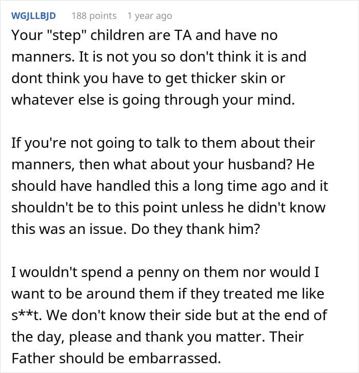 Readers agreed her reaction was completely justified and urged her to explain her feelings more clearly to her stepkids