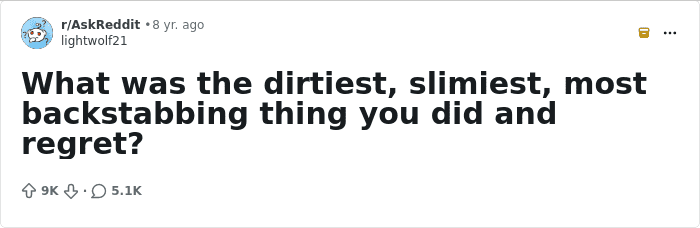 Still, not all mistakes are the same. Some cut deeper than others and can stay with you for years. On Reddit, people shared the dirtiest, slimiest, most backstabbing things they’ve ever done and the regret they still carry. Read their confessions below.