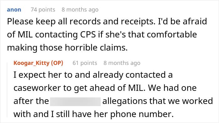 Not long after, she came back with an update and revealed that MIL had escalated the situation