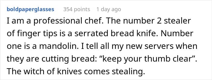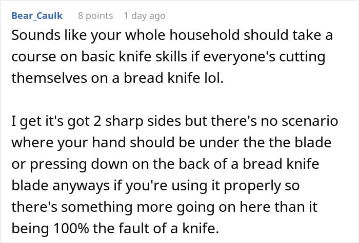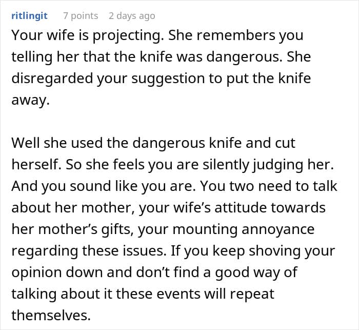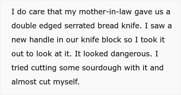 It’s important to be able to admit and accept the mistakes that we makeClearly, the man in this story knew that his mother-in-law’s gift was a bad idea from the start. But gifting a knife isn’t necessarily off limits; it’s just important that the receiver is extremely careful with how they use it. Regardless of where a knife came from, it’s capable of causing plenty of accidents in the kitchen.