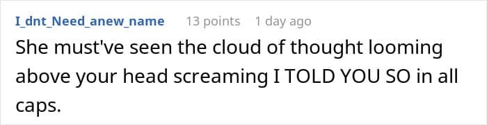 In this particular situation, though, it’s possible that the wife isn’t only feeling discomfort in her hand but also a bit of embarrassment. As many readers pointed out in the comments, she probably knows that her husband was right. But what she needs to figure out is how to communicate that.