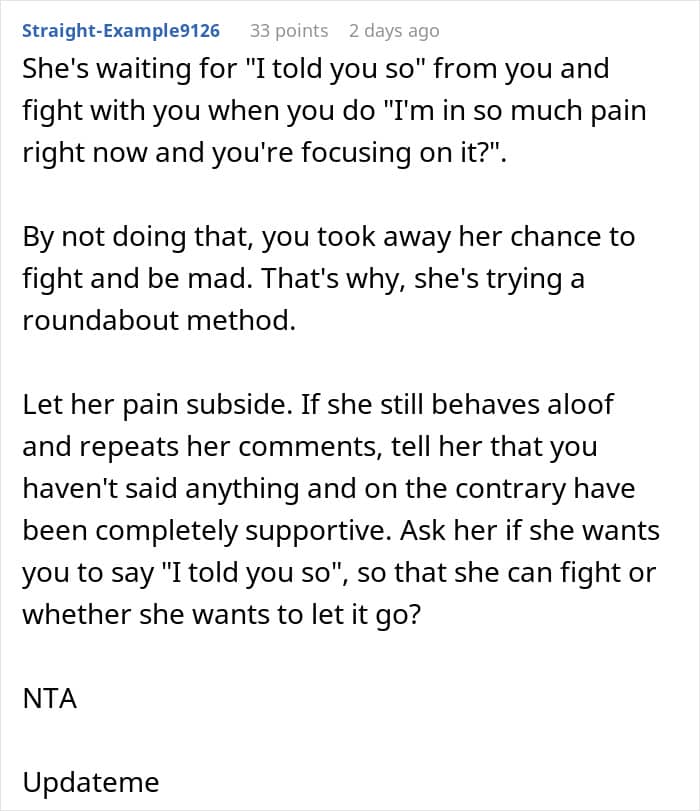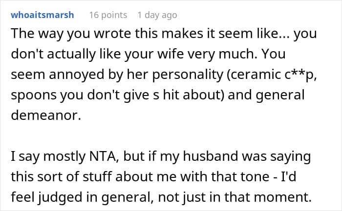 Many readers took the husband’s side, noting that he didn’t do anything wrong