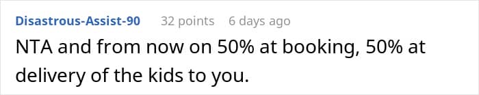 Most people who read her story think that the original poster (OP) was well within her moral rights to request partial compensation