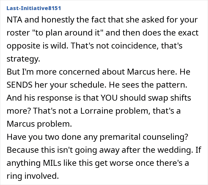 One woman reached out to Reddit for advice after months of being unable to attend her fiancé’s family events. Somehow, her soon-to-be mother-in-law found a way to schedule all of these occasions when she had to be at work. Below, you’ll find the full story, as well as some of the advice readers left the author.