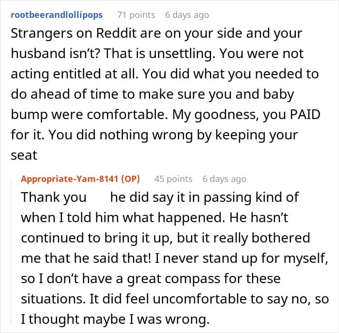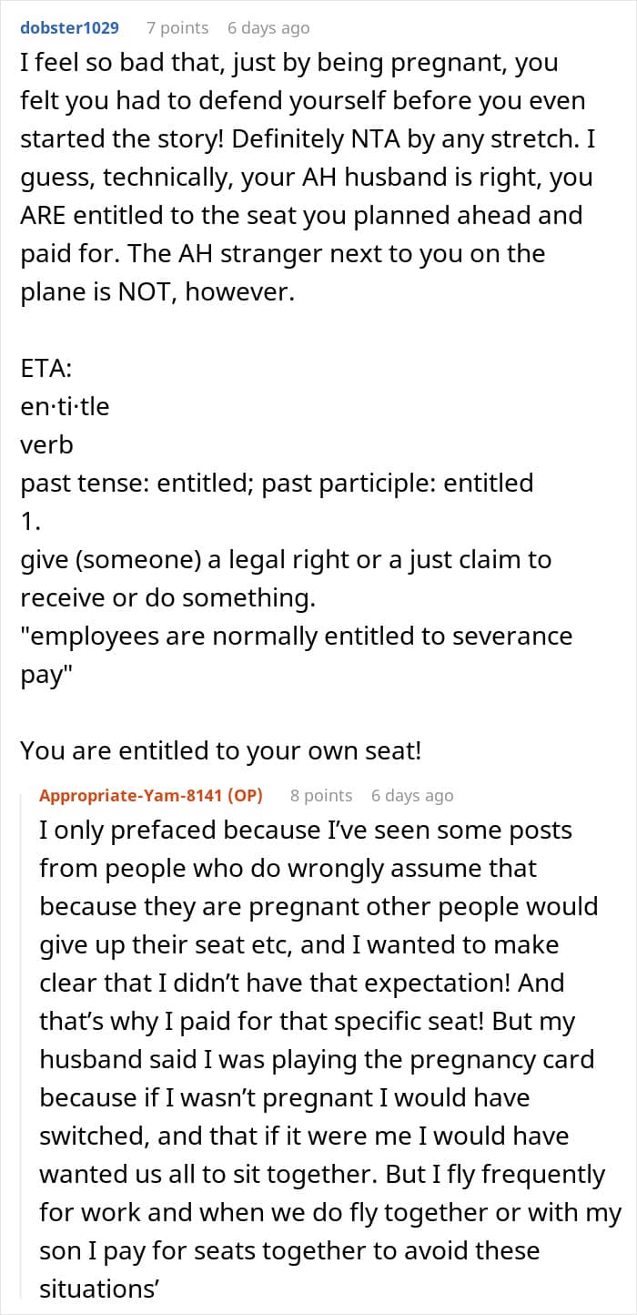 This pregnant woman booked a premium seat for her flight, but a fellow passenger asked if they could swap