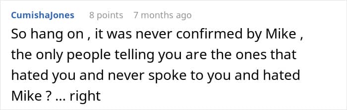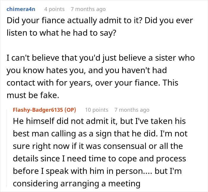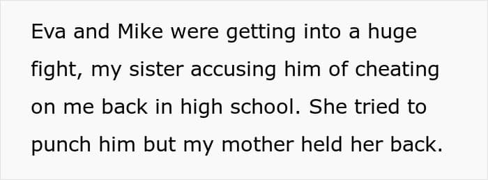 Obviously, they broke them, and her sister created a scene by getting into a fight with OP’s fiancé for “cheating on her.” Much to the poster’s horror, she learned that the guy had had an affair, not with her twin, but with her 43-year-old mother when he was 18 years old! She ditched the wedding immediately, but people kept calling her to tell her not to dwell on the past.