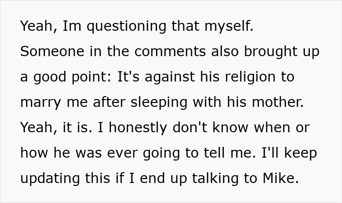 She finally met her ex-fiance and learned that it all started when he was 17, and the shocked poster just couldn’t forgive the guy or her mom for their actions