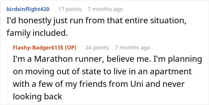 In fact, they have even coined a term for it, post-infidelity stress disorder, as it can have similar effects to PTSD. As if knowing he cheated wasn’t enough, the fact that he did it with her own mother must have been an absolute shocker for her. Hell, it would be too much for anyone to handle. No wonder she decided to run and get as far away from those toxic folks as possible.