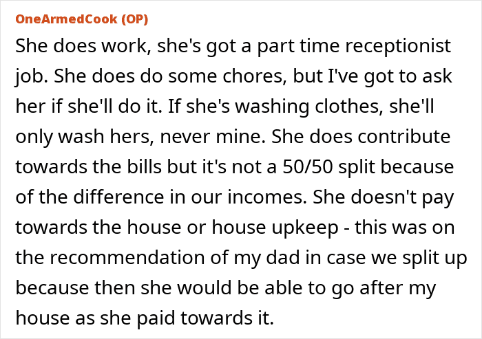 The situation was even worse because the girlfriend wasn’t pulling her weight at home