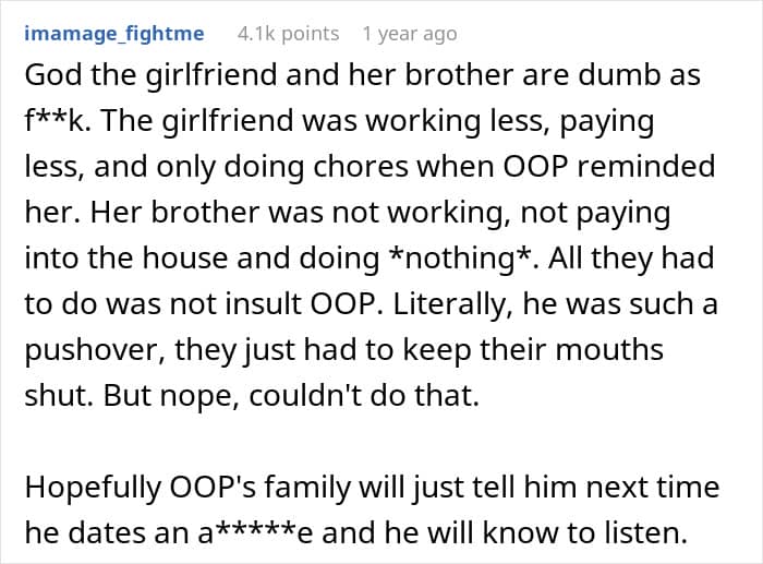 But his GF’s brother saw that as a sign of laziness and called him a “mummy’s boy”