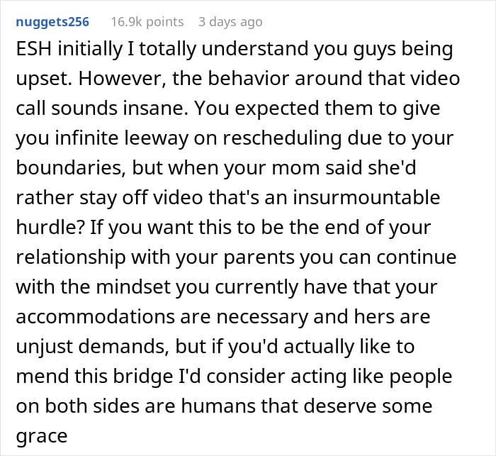 People thought both sides were acting like jerks, and some details in the story made people think the parents are “over the top ridiculous” with their rules and expectations
