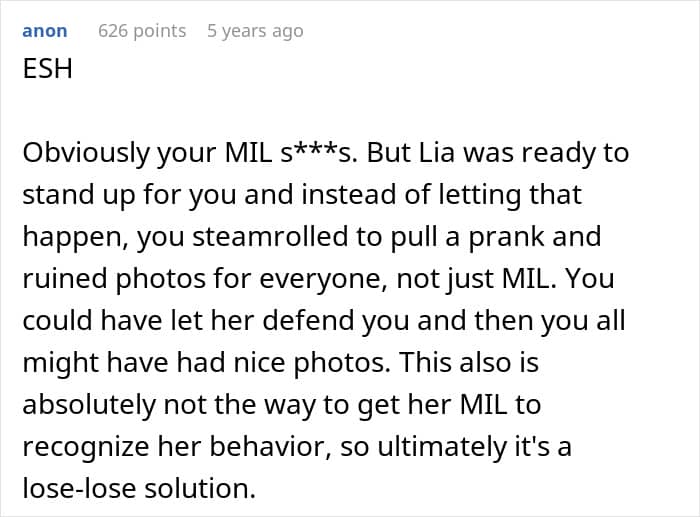 Additionally, the resolution of the story reinforces the importance of validation and alliance. A crucial element of this narrative is Lia’s reaction. Instead of being horrified by her wife’s sabotage, Lia laughs and even deletes the “decent” photos to ensure the revenge is complete. This transforms the act from a solitary moment of bitterness into a shared bonding experience. For the reader, this signals that the protagonist is safe and loved, countering the rejection from the mother-in-law. It satisfies our desire for the “underdog” to not only win the battle but to secure the loyalty of the most important person in the dynamic. The shared laughter in the dining room serves as the emotional climax, proving that the couple’s unity is stronger than the mother’s divisive tactics.