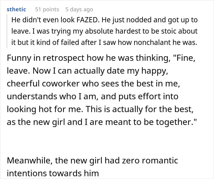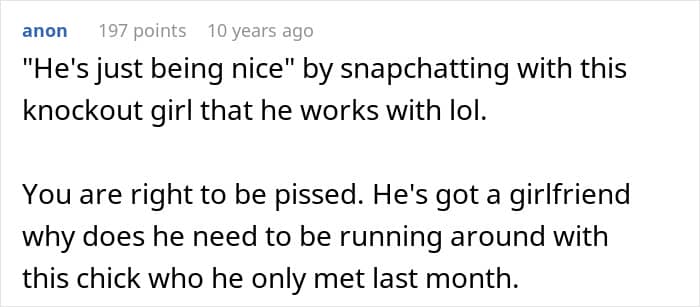 In this particular story, the author’s boyfriend seemed to jump headfirst into a workplace crush. He even downloaded Snapchat just for her and put more effort into the connection than his current relationship. That’s when things started to spiral. But there’s more to the story than just a flirtatious office romance, so keep reading. And hey, we’d love to hear your thoughts on workplace crushes. Have you experienced the thrill or the chaos yourself?